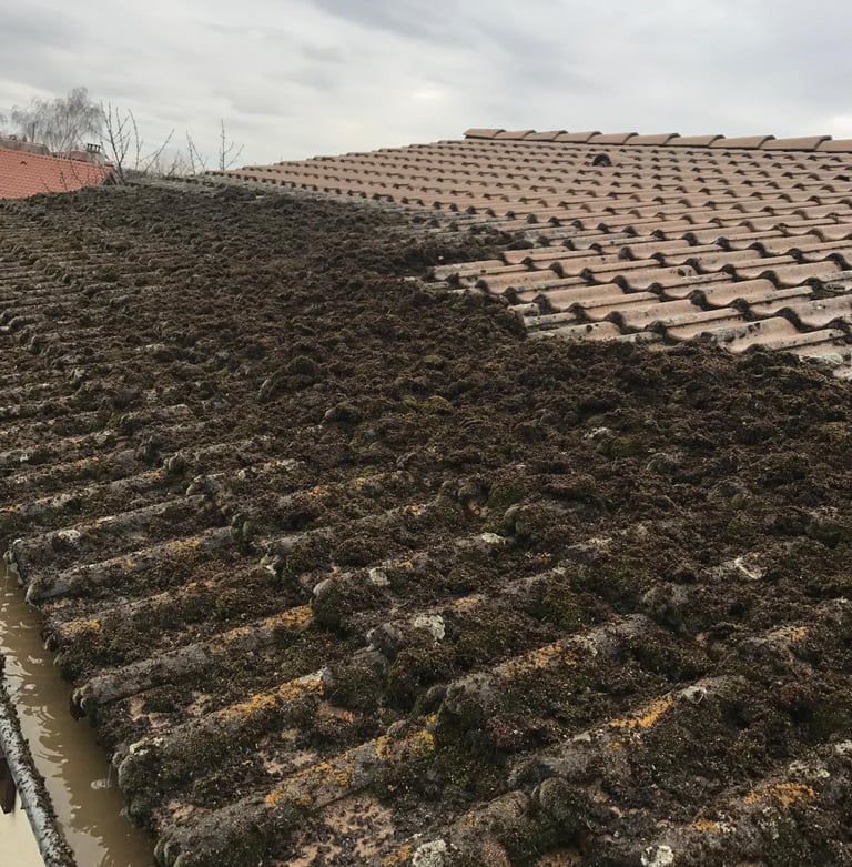 Démoussage de Toiture : Avec le temps, les mousses, lichens et algues peuvent envahir votre toiture, compromettant son étanchéité et sa longévité. Notre service de démoussage élimine ces parasites en profondeur, sans abîmer votre couverture. Nous utilisons des techniques adaptées et des produits professionnels pour garantir une toiture propre et parfaitement protégée contre les éléments.