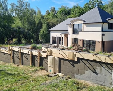 Murs de Clôture et Murs de Soutien : Protégez et délimitez votre terrain avec nos murs de clôture robustes et esthétiques. Nous construisons également des murs de soutien pour stabiliser votre terrain en pente, assurant sécurité et stabilité à long terme.